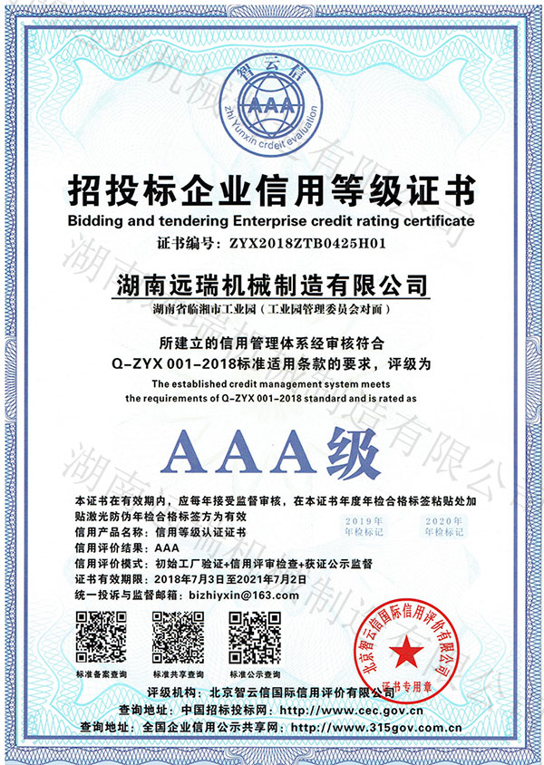 AAA級企業(yè)信用評級