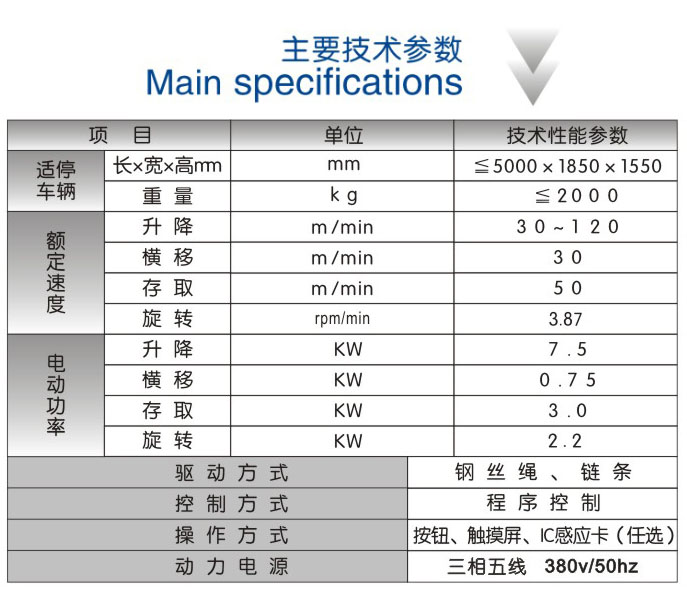 路邊堆垛型 使用說明: 1、將車開上升降平臺,然后人下車。 2、按操作按扭或刷卡,自動檢測車輛是否到位。 3、升降裝置開始動作,提升升降平臺到指定位置。 4、到位后,縱向存取車裝置開始動作,將車移到指定